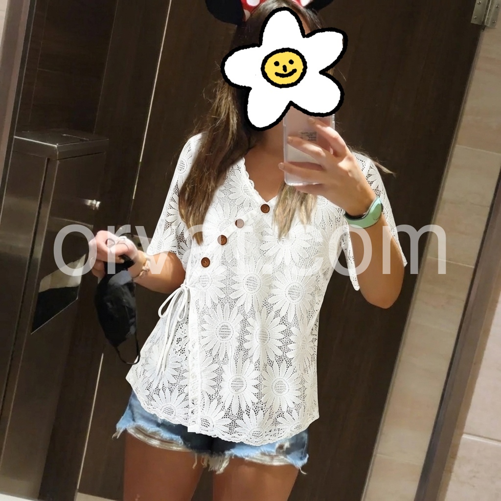 This lace blouse solves the “too plain or too fancy” dilemma. The daisy lace overlay adds romance, while the drawstring side lets you adjust the fit for a custom look.
