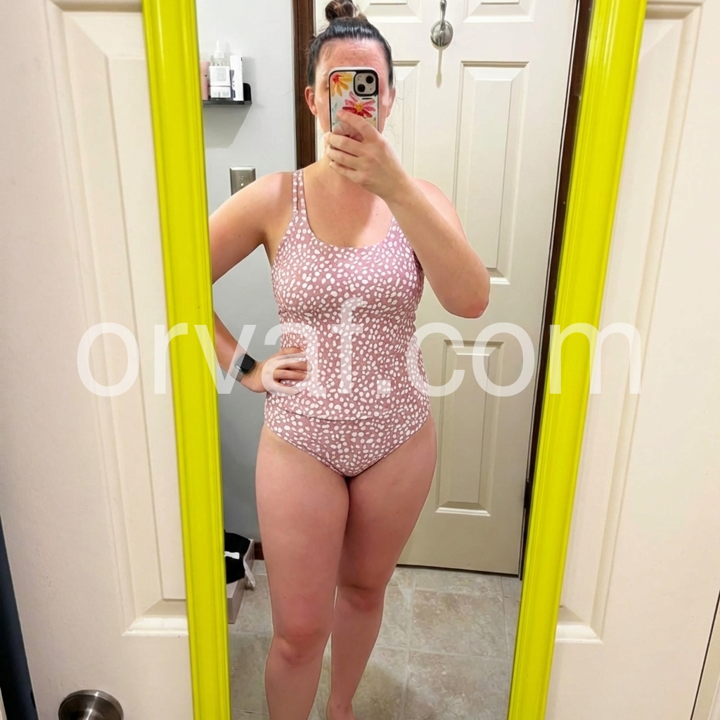 This is the perfect tanking set for active moms who have littles pulling and tugging on them In the pool. Fit is comfy and flattering. The pink print is fantastic. It is vibrant and fun. The print makes me happy. This was way better than I expected so I would definitely recommend. Runs true to size. I am a size small for bathing suits.
