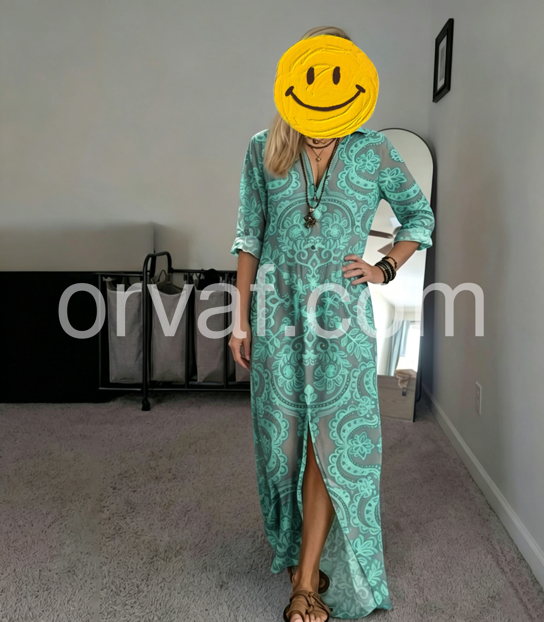 The intricate boho print is a showstopper, and the lightweight fabric keeps you cool on hot beach days. The V-neck flatters your bust, and the 3/4 sleeves hide arm fat, making it perfect for all body types.