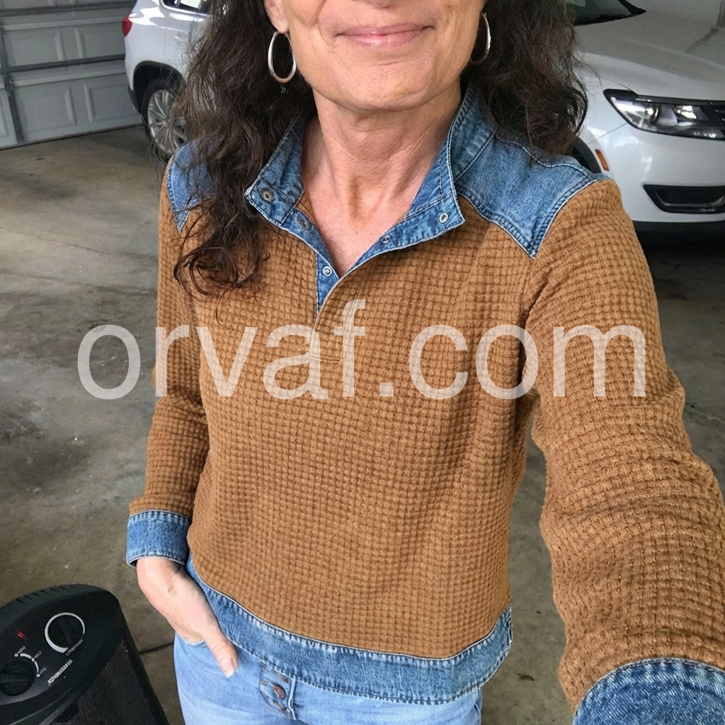 I absolutely love this top! The waffle-knit texture feels soft and high-quality, and the denim collar gives it such a stylish, casual twist. It fits comfortably and looks great with jeans. I’ve already worn it multiple times, and it still looks brand new—definitely worth the purchase.