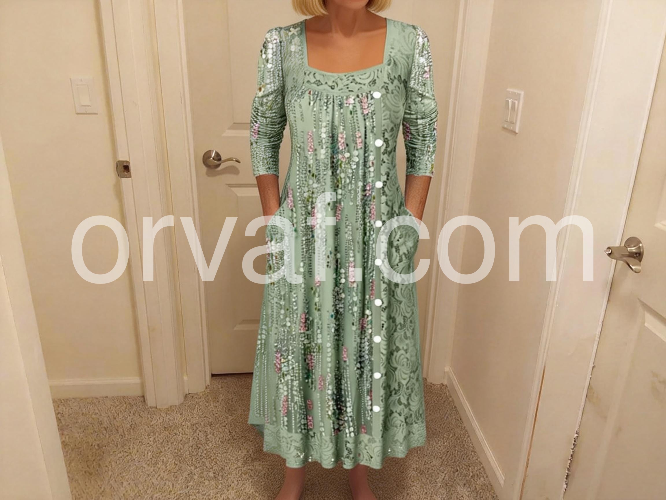 Imagine effortless elegance that turns heads at every glance. This fresh green midi dress captures modern sophistication with its architectural square neckline that frames the collarbone beautifully, paired with graceful long sleeves for refined polish. The A-line silhouette flows with understated grace, while the luxurious rayon-elastane blend moves like silk against your skin—stretchy enough for all-day comfort, yet structured enough to maintain its impeccable shape. Practical side pockets add a touch of everyday luxury, while the midi length strikes the perfect balance between timeless and contemporary. Whether you're navigating the office, attending weekend brunches, or stepping into evening plans, this dress adapts seamlessly to your lifestyle. Machine washable for effortless care. Discover the dress that makes you feel as good as you look.