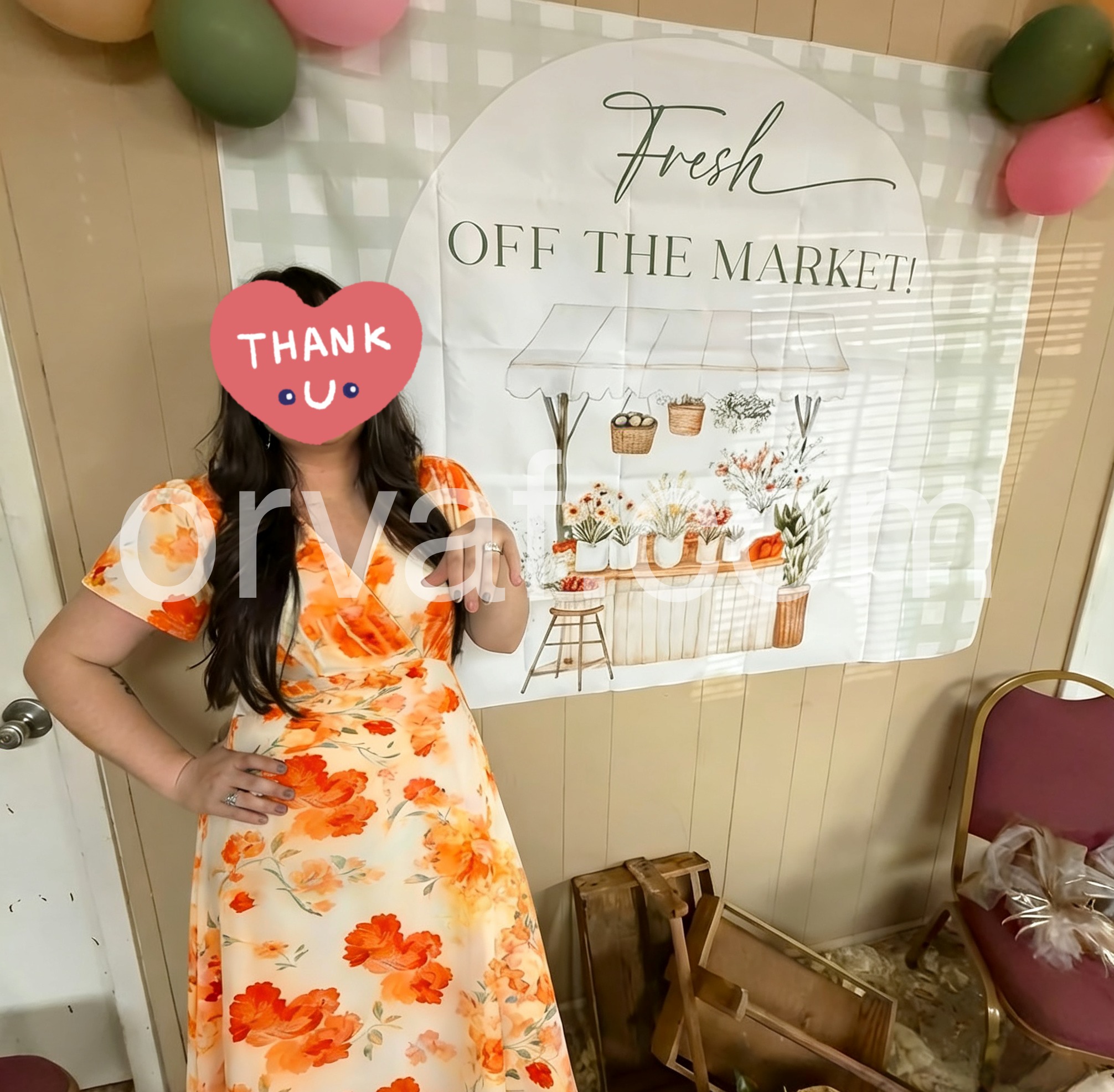 The vibrant orange watercolor floral print on a soft white base is eye-catching and cheerful.