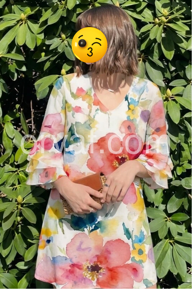 This floral dress features a soft watercolor print with vibrant pink, red, and blue blooms on a light background. The V-neckline and flared sleeves add a romantic touch. Loose, relaxed fit ensures comfort and ease. Perfect for spring outings, brunches, or beach days. Lightweight fabric flows beautifully for a breezy, effortless look.