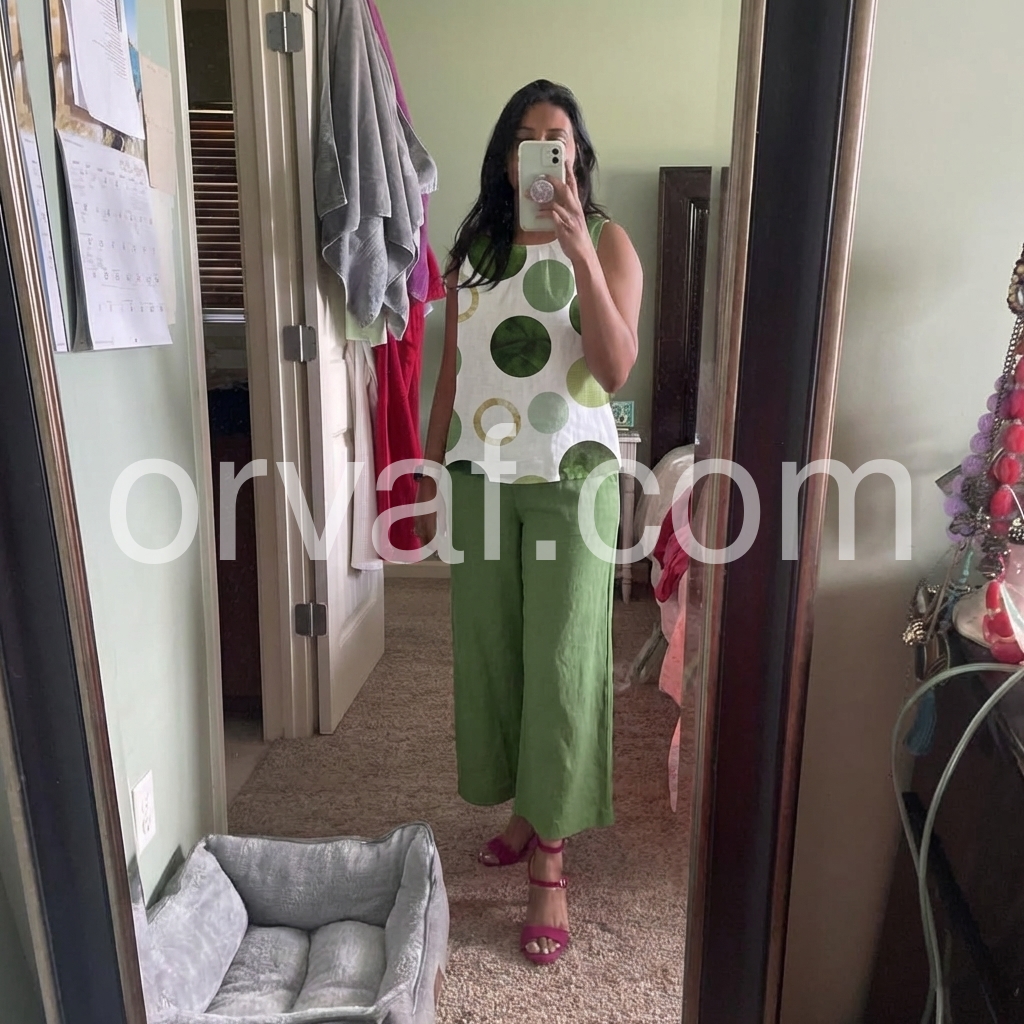 Really cute and comfortable outfit. The elastic waist on the green pants makes them very forgiving, and the top is airy and light. I wore this to a family gathering and everyone asked where I got it. It is versatile enough for casual outings or dressing up a bit with wedges.