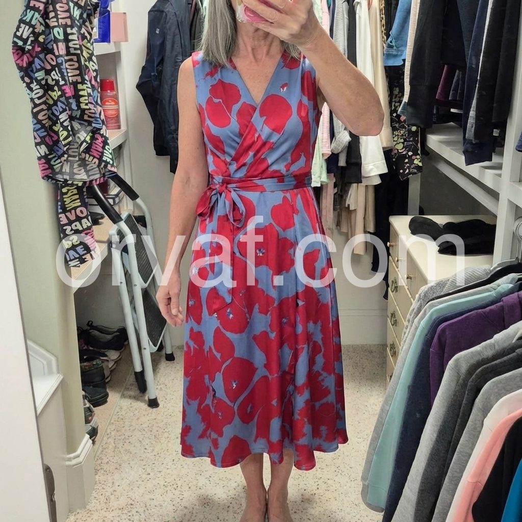 This floral wrap midi dress is absolutely stunning! I love the V-neck wrap design that cinches perfectly at the waist with the matching belt, creating such a flattering silhouette. The bold red and blue floral print is vibrant and eye-catching, perfect for spring weddings or brunch dates. It flows beautifully when I walk, and the fit is true to size. I got so many compliments the first time I wore it!