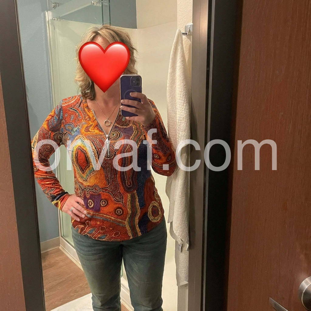 Autumn Aztec Geometric Zippered Long Sleeve Top