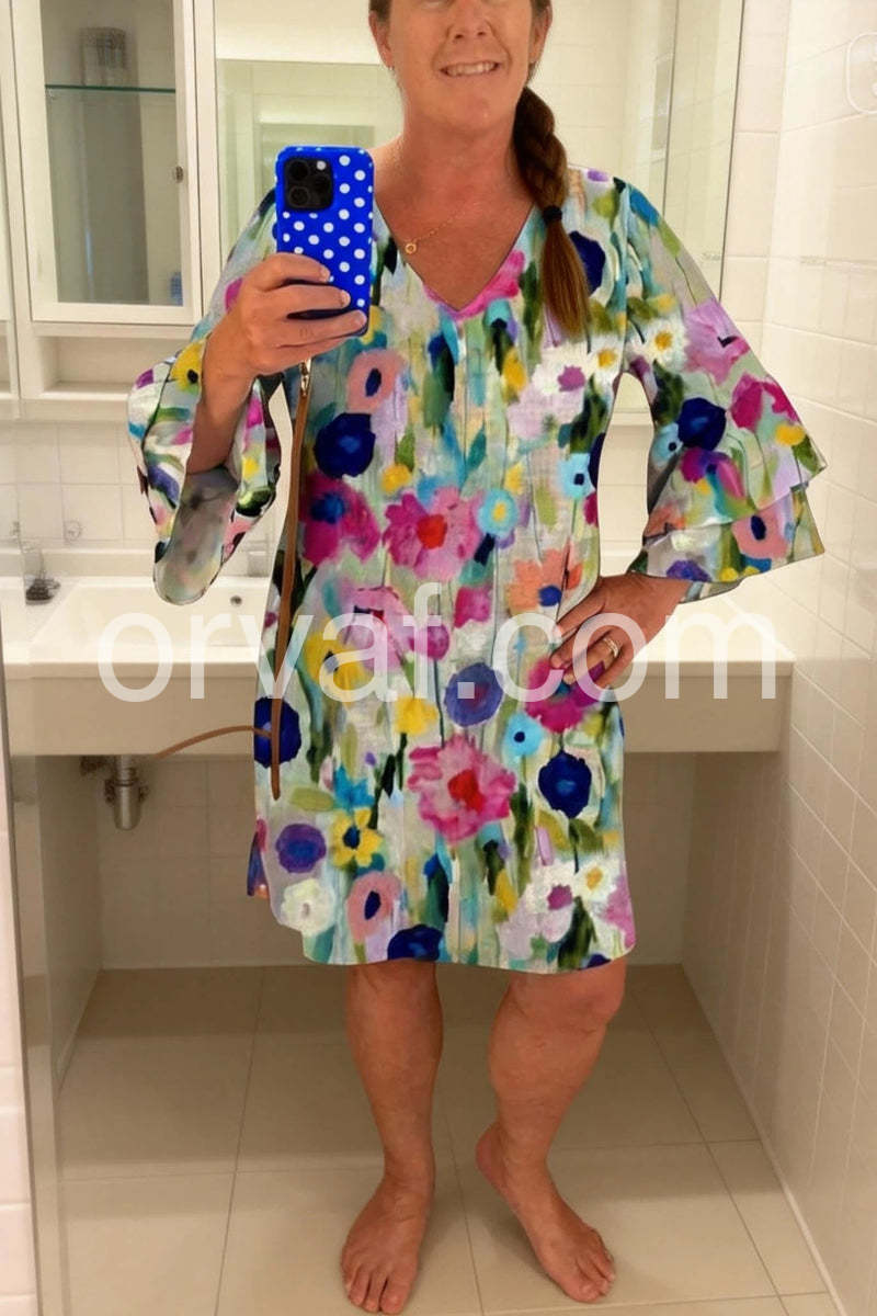 Romantic Floral Print V-Neck Mini Dress