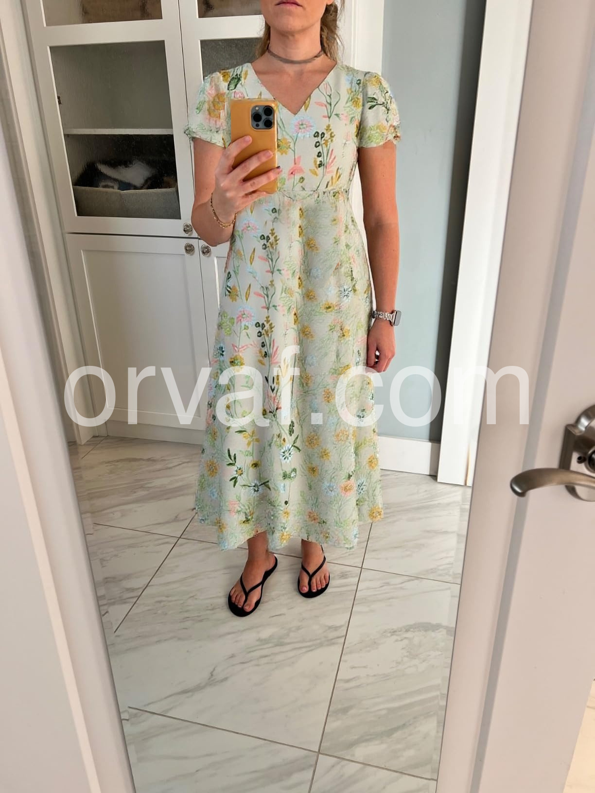 This Distinctive V-Neck Short Sleeve Maxi Dress features a unique v-neck design and short sleeves, giving it a timeless and elegant appearance. Its comfortable and flowy fit makes it perfect for any occasion, while its high-quality material ensures durability. Upgrade your wardrobe with this stylish and functional dress.