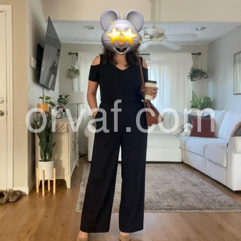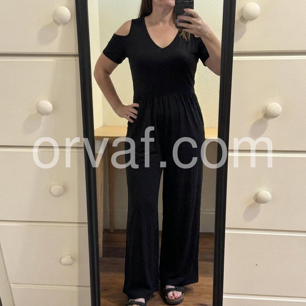 I absolutely love this jumpsuit! The cold shoulder design adds such a cute touch, and the wide legs make it incredibly comfortable. Plus, it has pockets! I wore it on a date night and got so many compliments. Highly recommend!